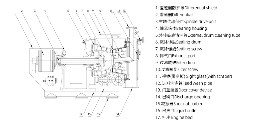 - It is a combination of a solid bow decanter centrifuge and a screen worm centrifuge with exceptional dewatering results.ln the decanteicomponent, the feed suspension is first pre-thickened, i.e. it is extensively dewatered in the conical part of the solid bowl The iquid isclarified in the cylindrical part and finally discharged.