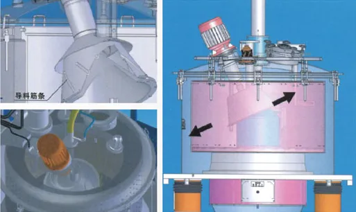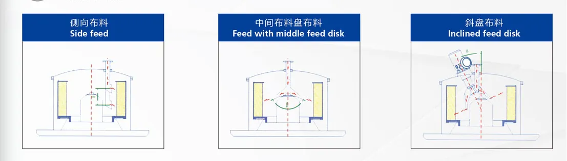 Feed disk rotating speed is adjustable, the feed disk has the samerotating direction as the drum; their angular velocities are basicallyequivalent, but there is a rotating speed difference; the inclinedfeed disk can make slurry from the feed disk evenly distributed inthe drum height direction.